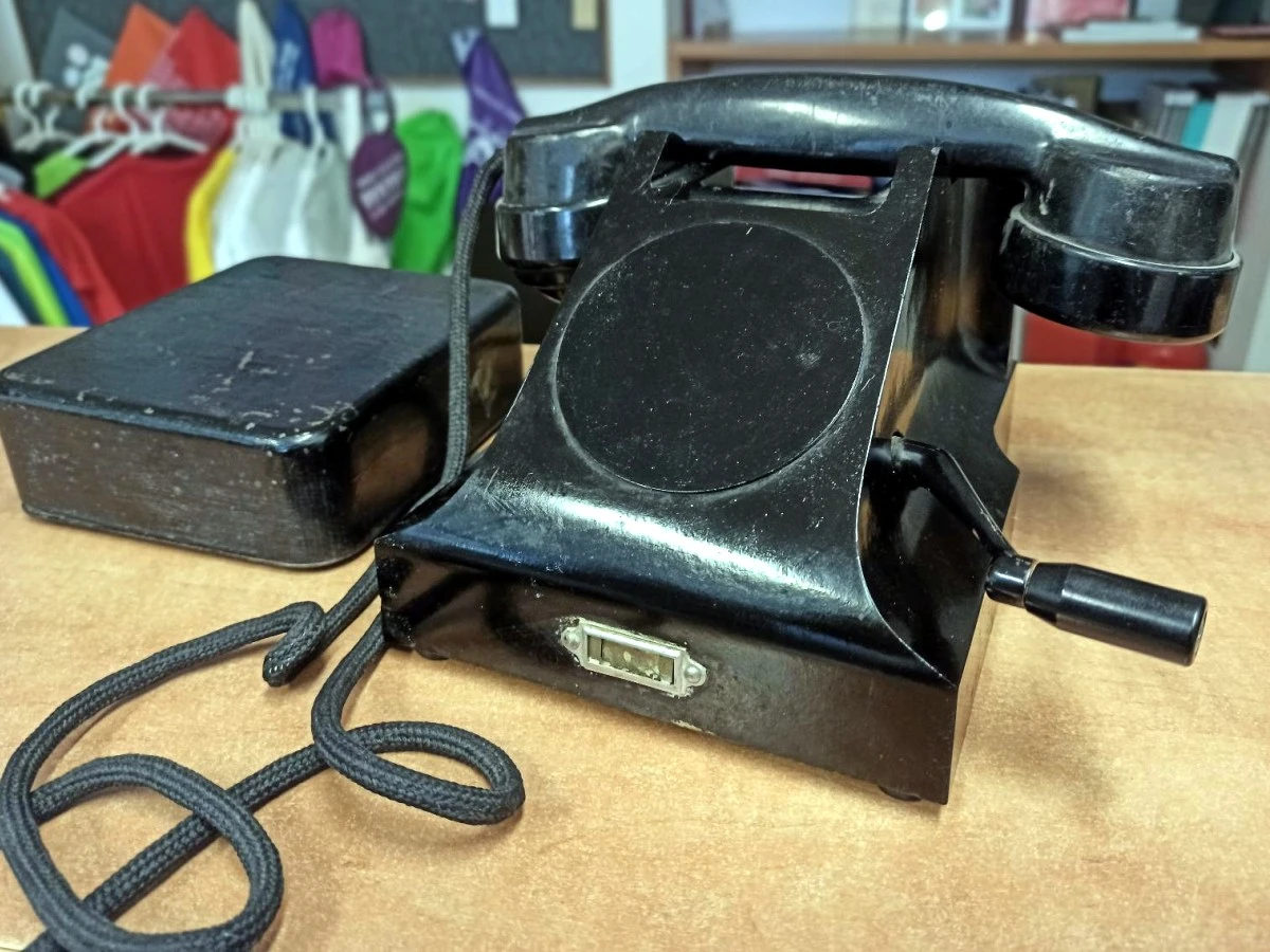 Domáci telefón od firmy „Prchal-Ericsson Praha-Kolín“, asi tridsiate roky 20. storočia